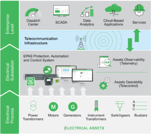 - Orta gerilim (OG) kesici ve ayırıcılarının izlenmesi ve kumandası,